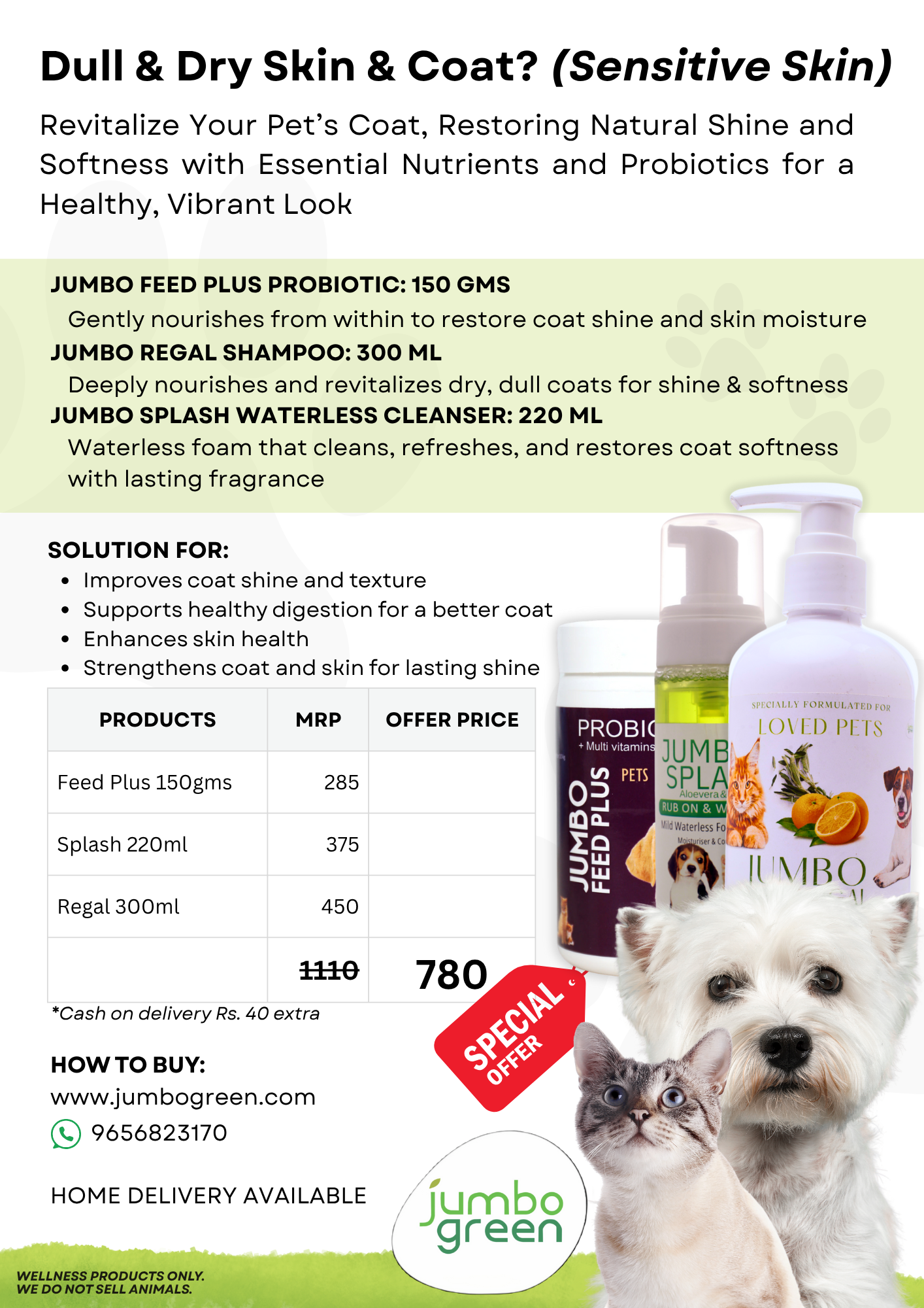 Revitalize your pet’s coat, restoring natural shine and softness with essential nutrients and probiotics for a healthy, vibrant look. This combo works from the inside out—gently nourishing the skin and coat while supporting digestion for long-lasting results.